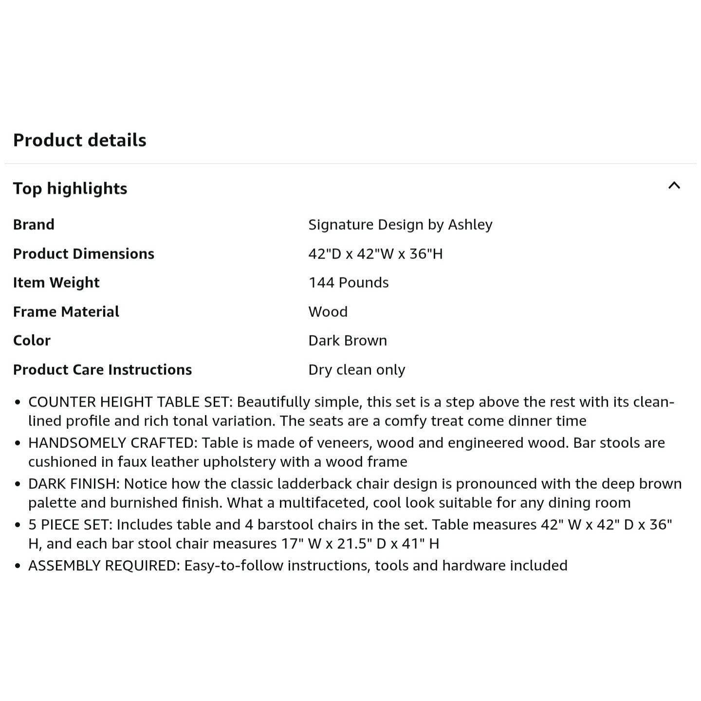 $ 220 obo Signature Design by Ashley Coviar 5 Piece Counter Height Dining Set, Includes Table & 4 Barstools, Brown