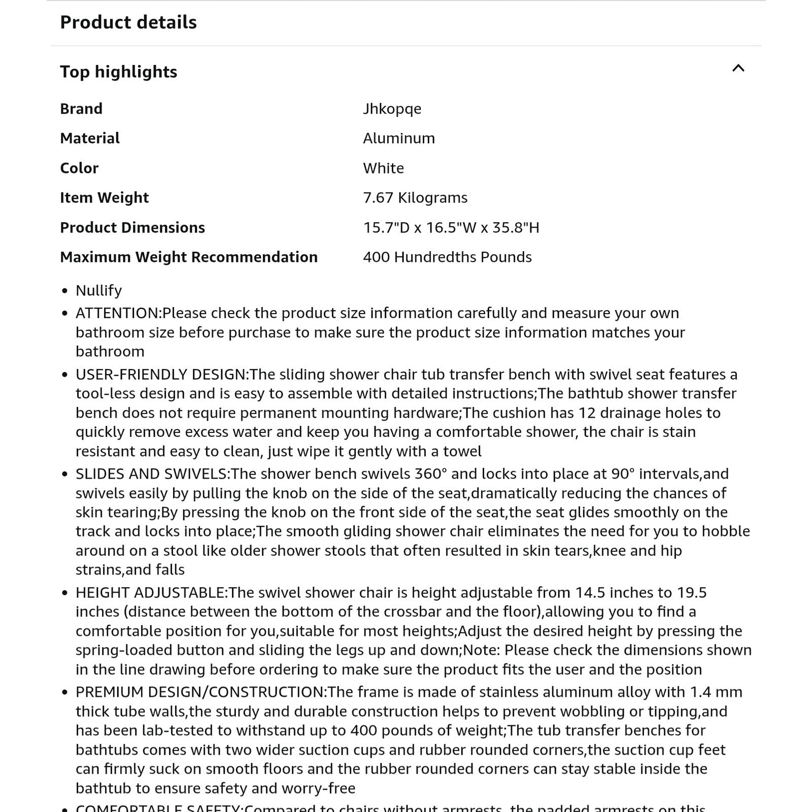 $ 115 obo Sliding Shower Chair,Height Adjustable Tub Transfer Bench,360° Shower Swivel Seat,Bath and Shower Safety Seating with Handles for Seniors&Handicap,400Lb Capacity