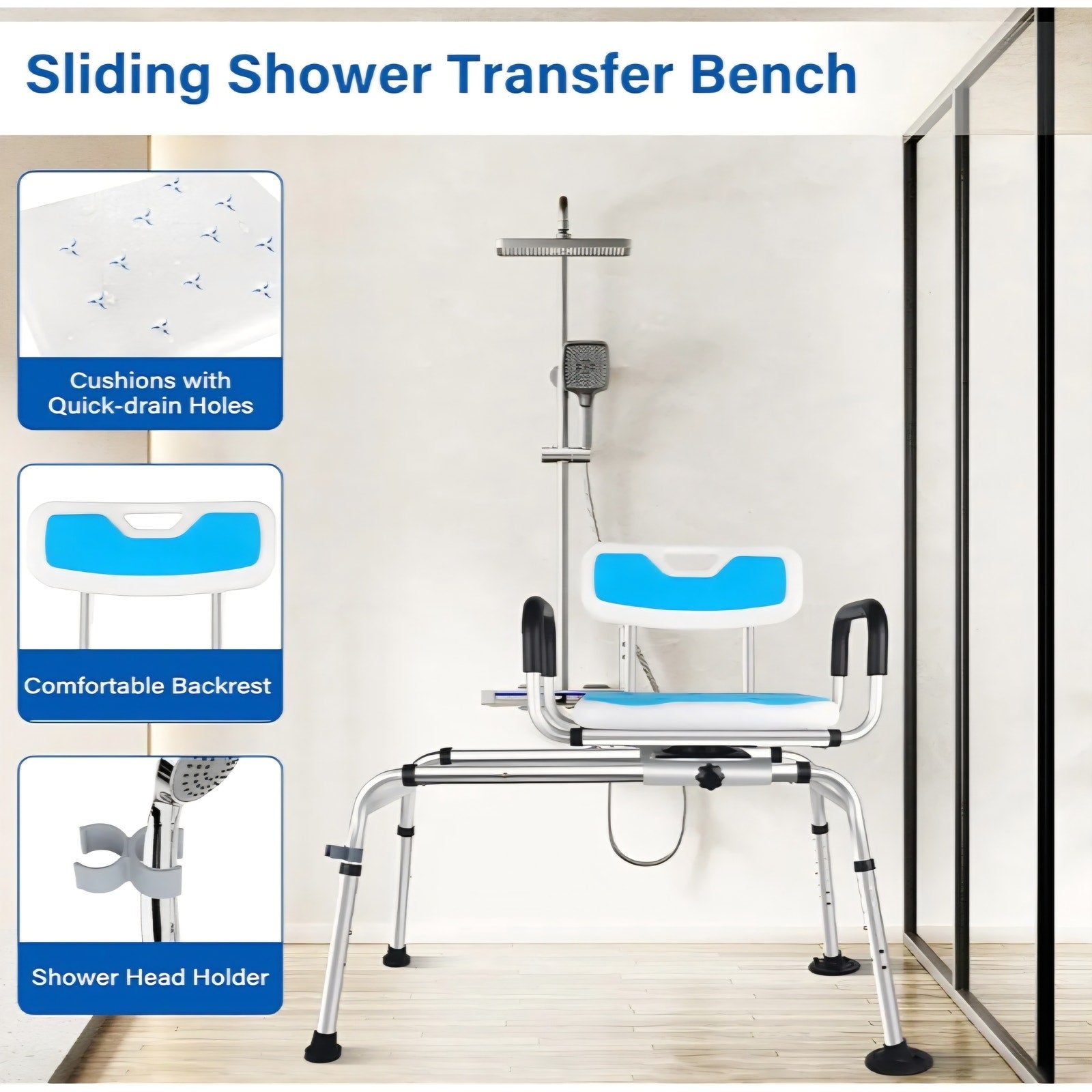 Sliding Shower Chair,Height Adjustable Tub Transfer Bench,360° Shower Swivel Seat,Bath and Shower