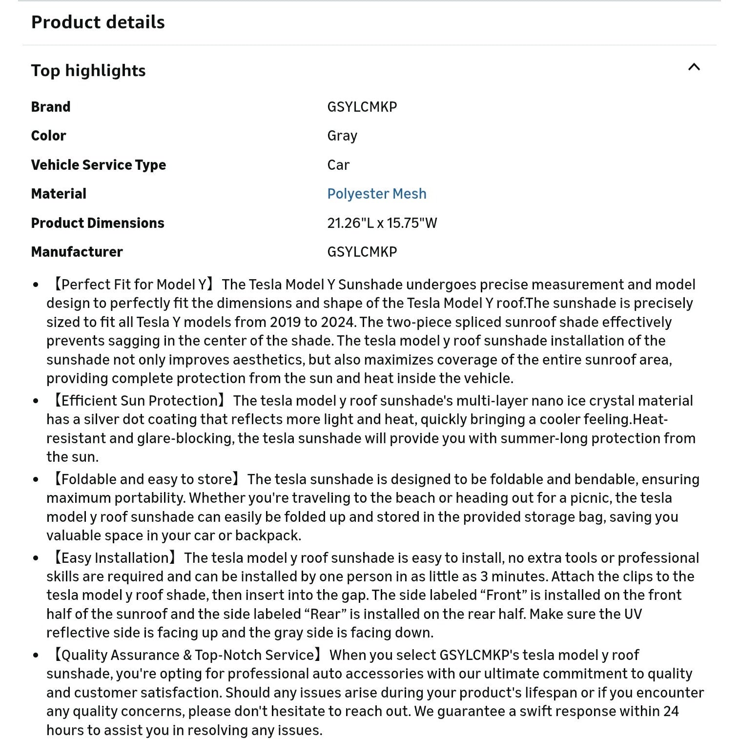 $ 20 Sunshade for Tesla Model Y Roof for Tesla Model Y 2019-2024 Sunshade Heat Insulation Accessories 2021 2022 2023 Roof Sun Shade Gray