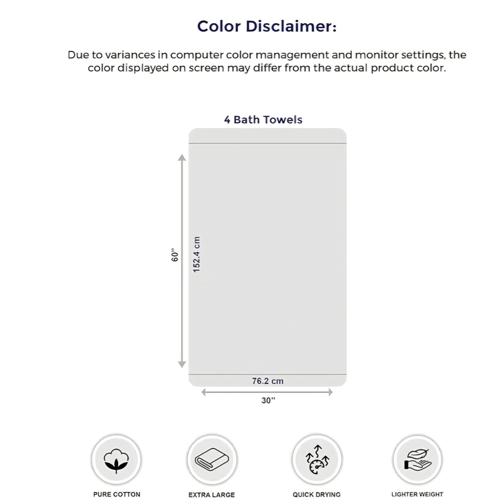 Tens Towels Pack of 4 Extra Large Bath Towels 30 x 60 Inches, 100% Cotton, Larger & Lighter Weight,