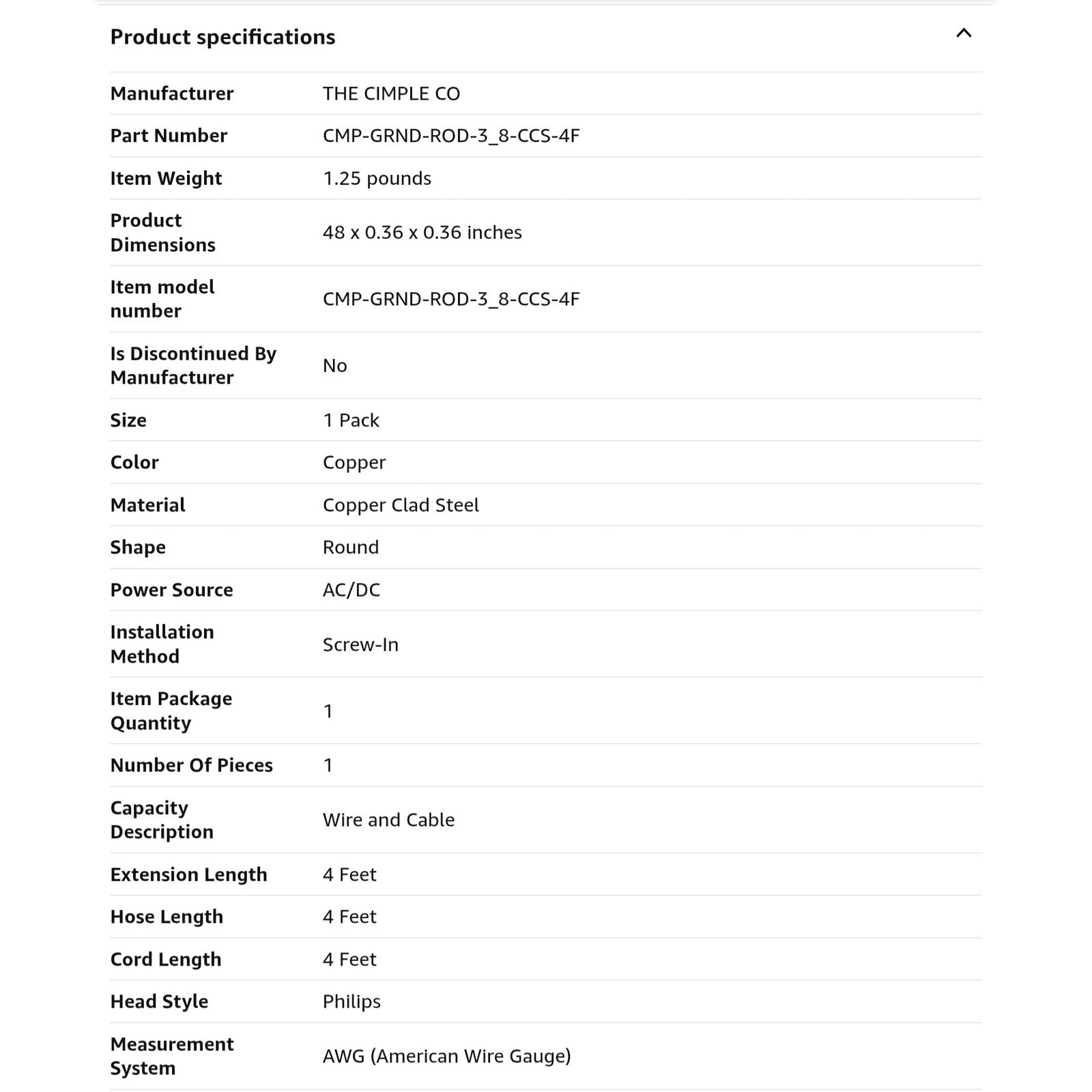 $ 25, THE CIMPLE CO 4ft Copper Grounding Rod - 3/8" Diameter - Includes Ground Rod Clamp - Great for Electric Fences, Antennas, Satellite Dishes, and other Grounding and Bonding Needs - Set of 1