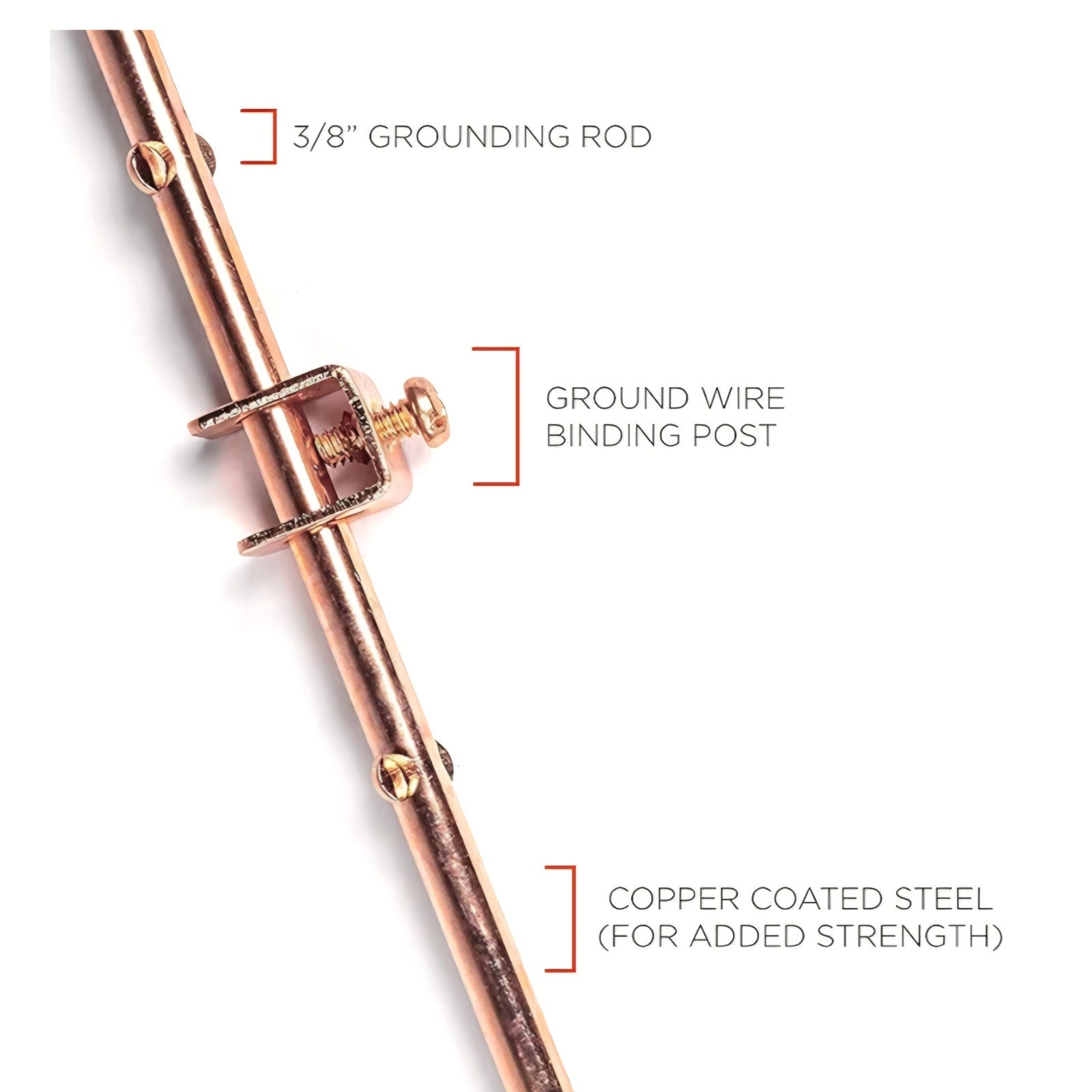 THE CIMPLE CO 4ft Copper Grounding Rod - 3/8" Diameter - Includes Ground Rod Clamp