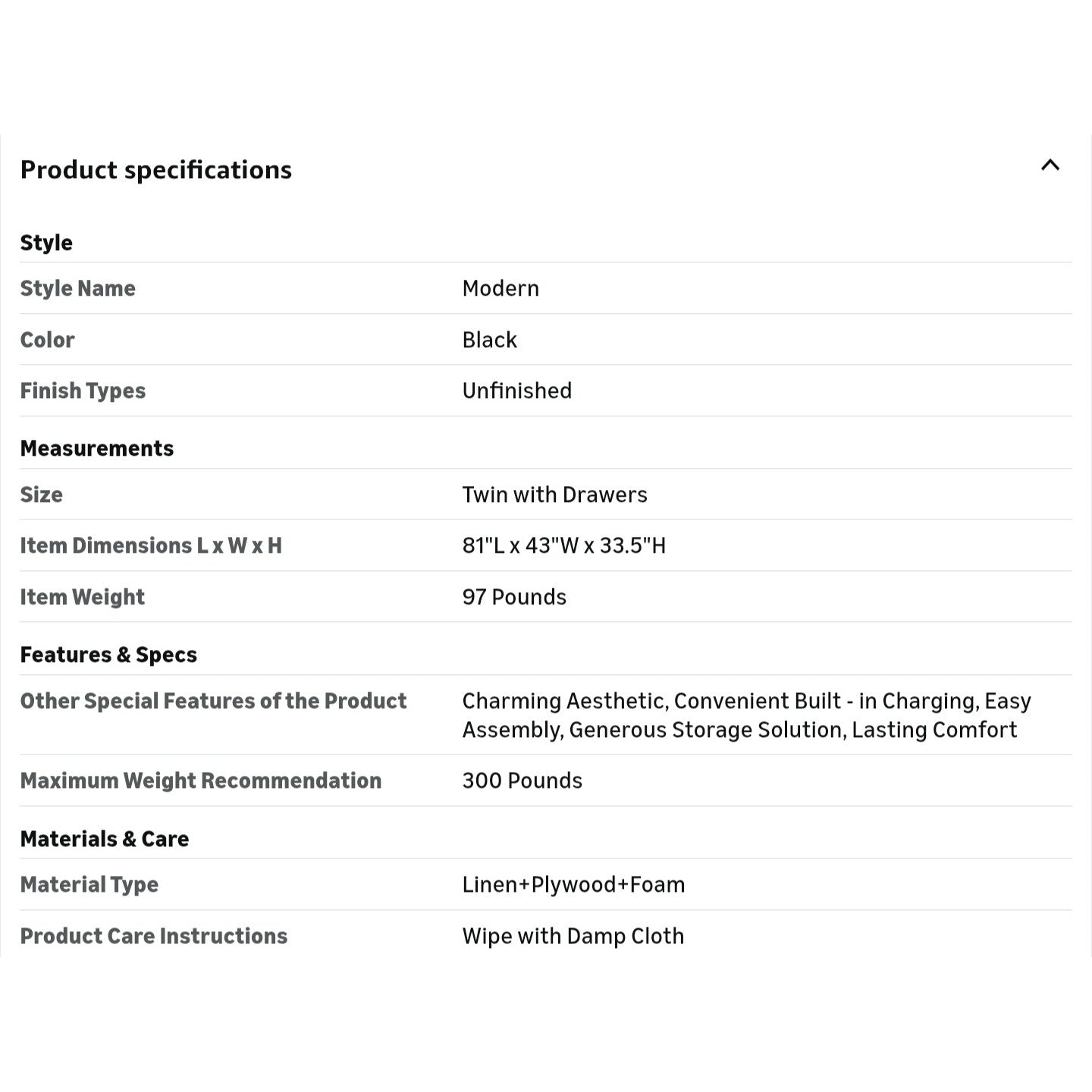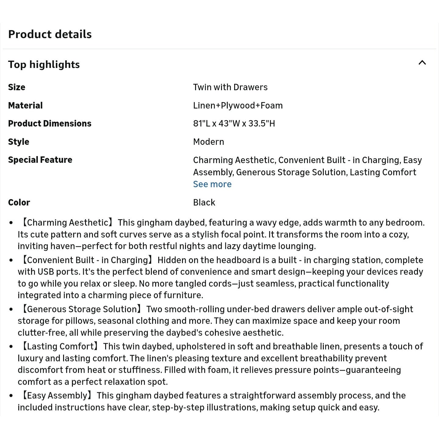 $ 185 OBO DEINPPA Twin Size Upholstered Daybed with 2 Storage Drawers, Gingham Daybed with USB Ports for Bedroom Living Room Guest Room-Black
