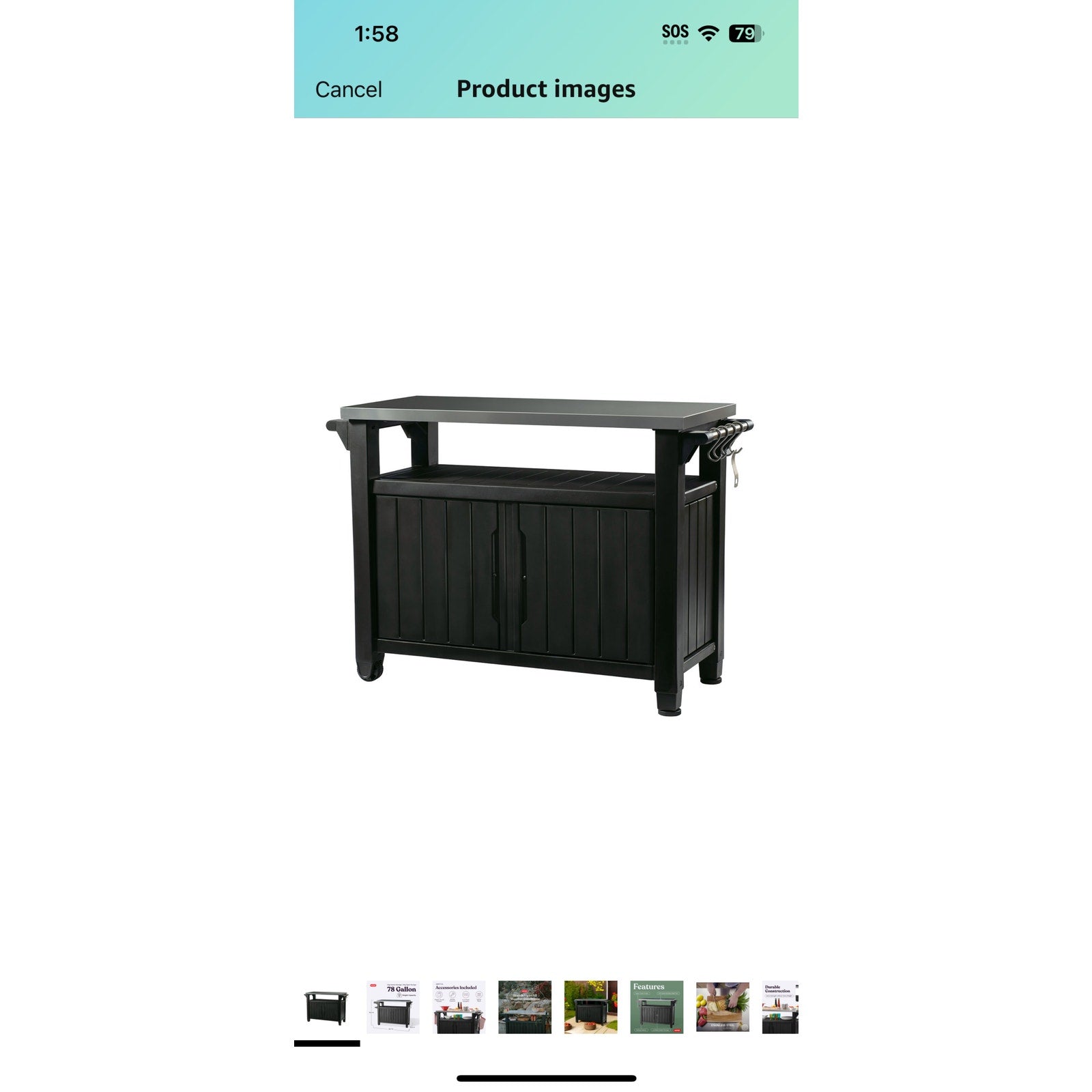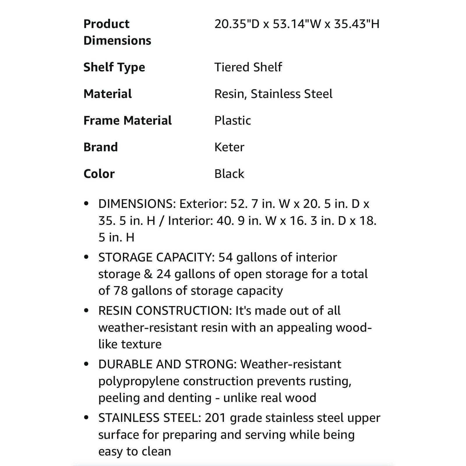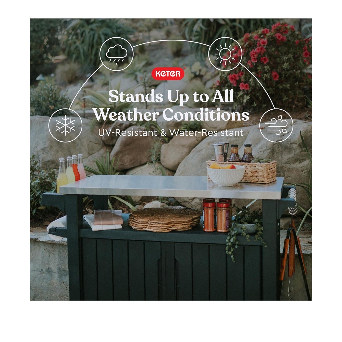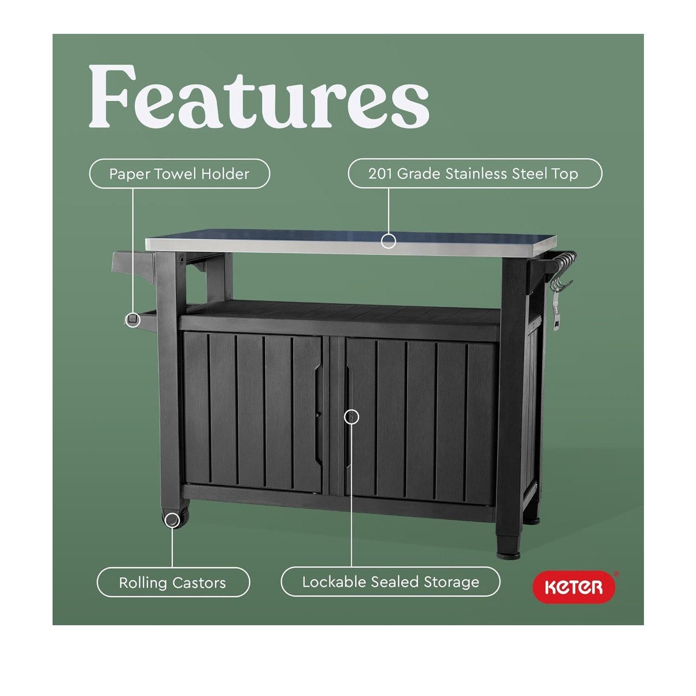 $ 190 OBO Keter Unity XL Portable Outdoor Table with Stainless Steel Top for Kitchen Prep and Outdoor Storage Cabinet for Grilling Accessories, Dark Grey
