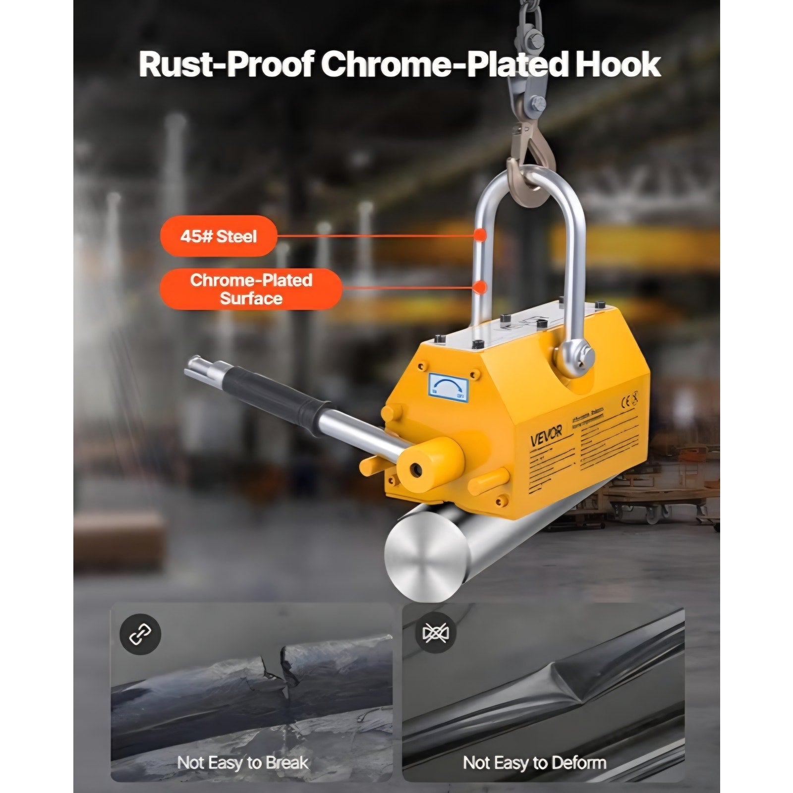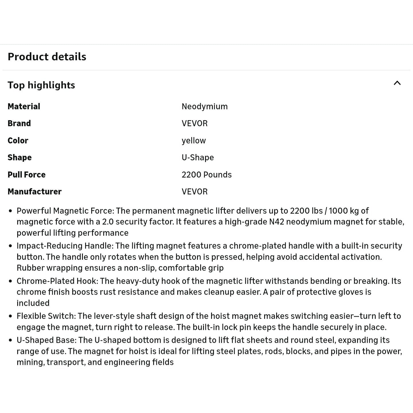 $ 140 obo VEVOR Permanent Magnetic Lifter, 2200 lbs Pulling Capacity, Heavy Duty N42 Neodymium Lifting Magnet with Release Handle and Steel Hook, Used in Shop Crane and Hoist, for Lifting Plate Steel, Board