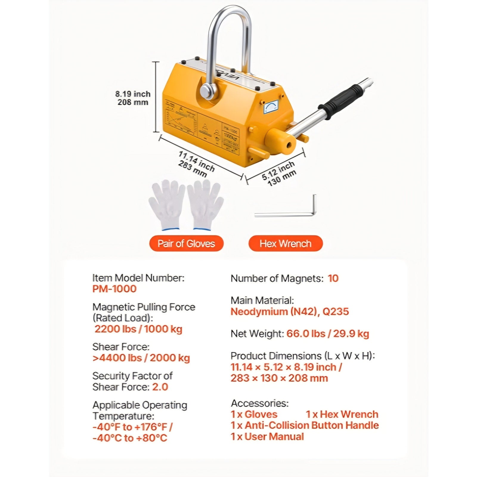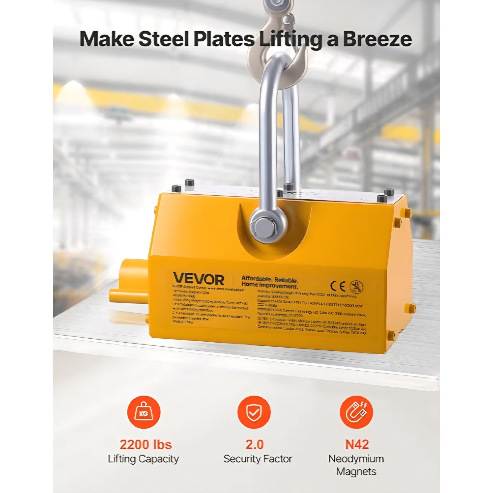VEVOR Permanent Magnetic Lifter, 2200 lbs Pulling Capacity, Heavy Duty N42