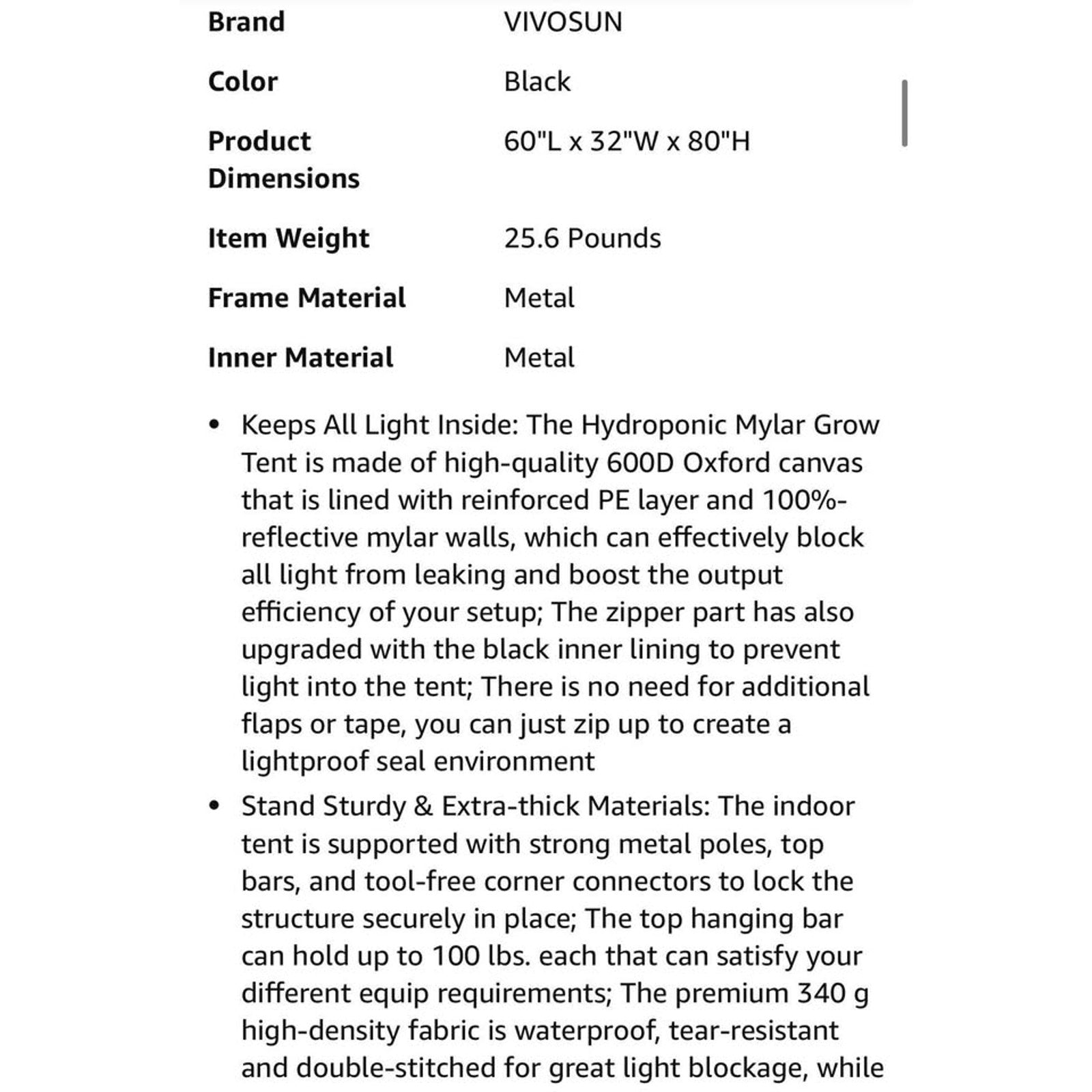 $100 OBO VIVOSUN S538 5x2 Grow Tent, 60"x32"x80" High Reflective Mylar with Observation Window and Floor Tray for Hydroponics Indoor Plant for VS2000/VSF4300