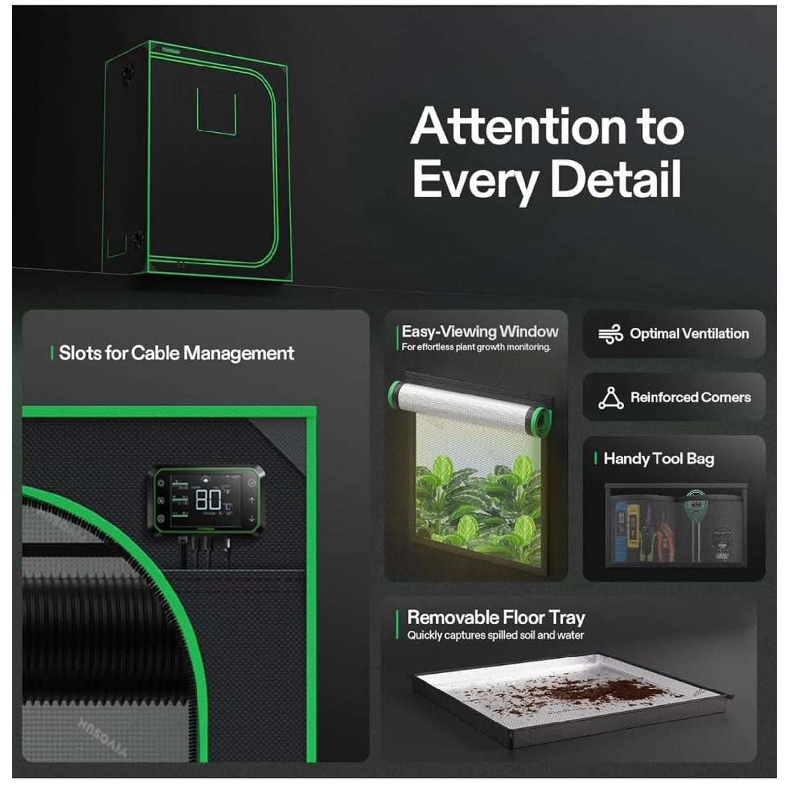 VIVOSUN S538 5x2 Grow Tent, 60"x32"x80" High Reflective Mylar with Observation Window and Floor Tray