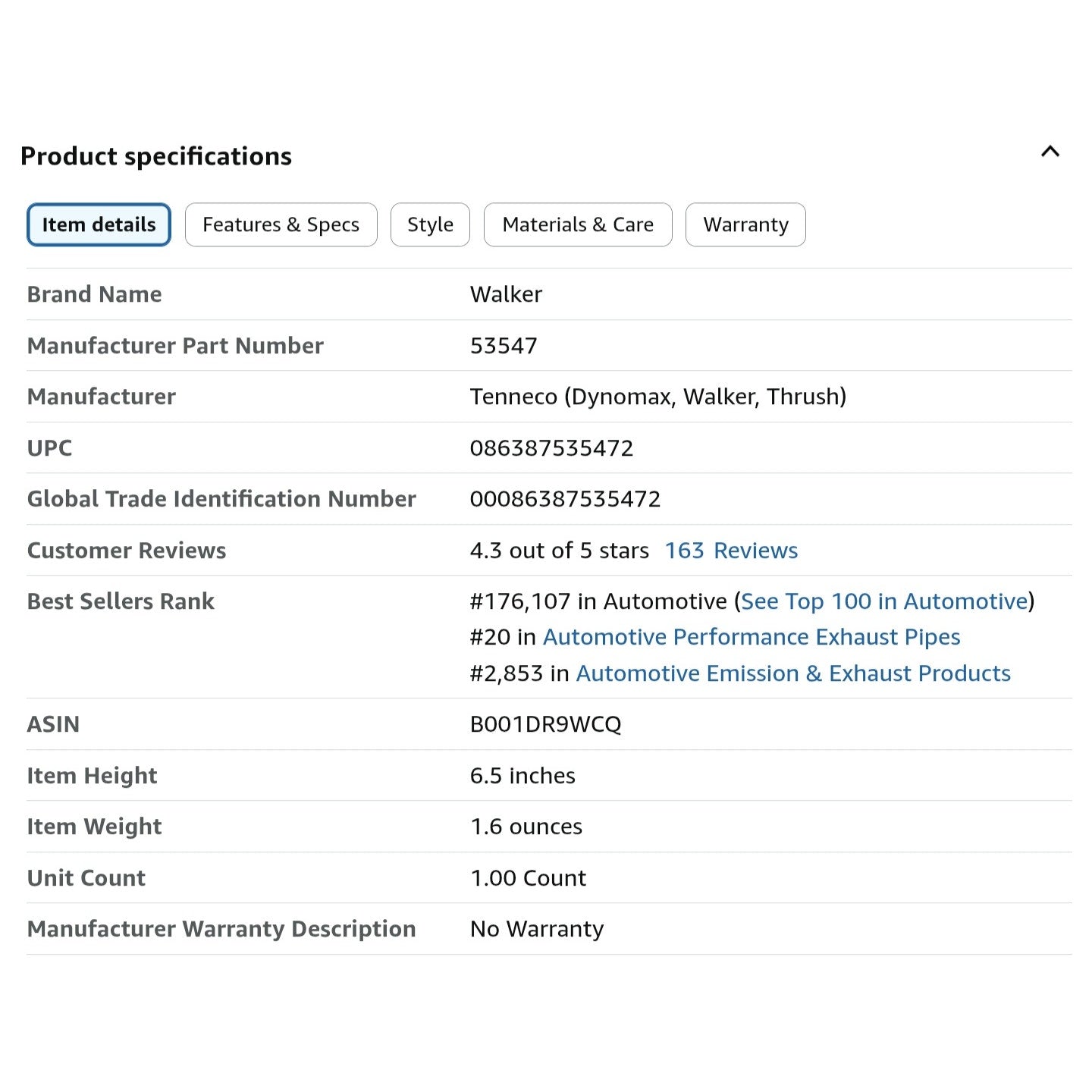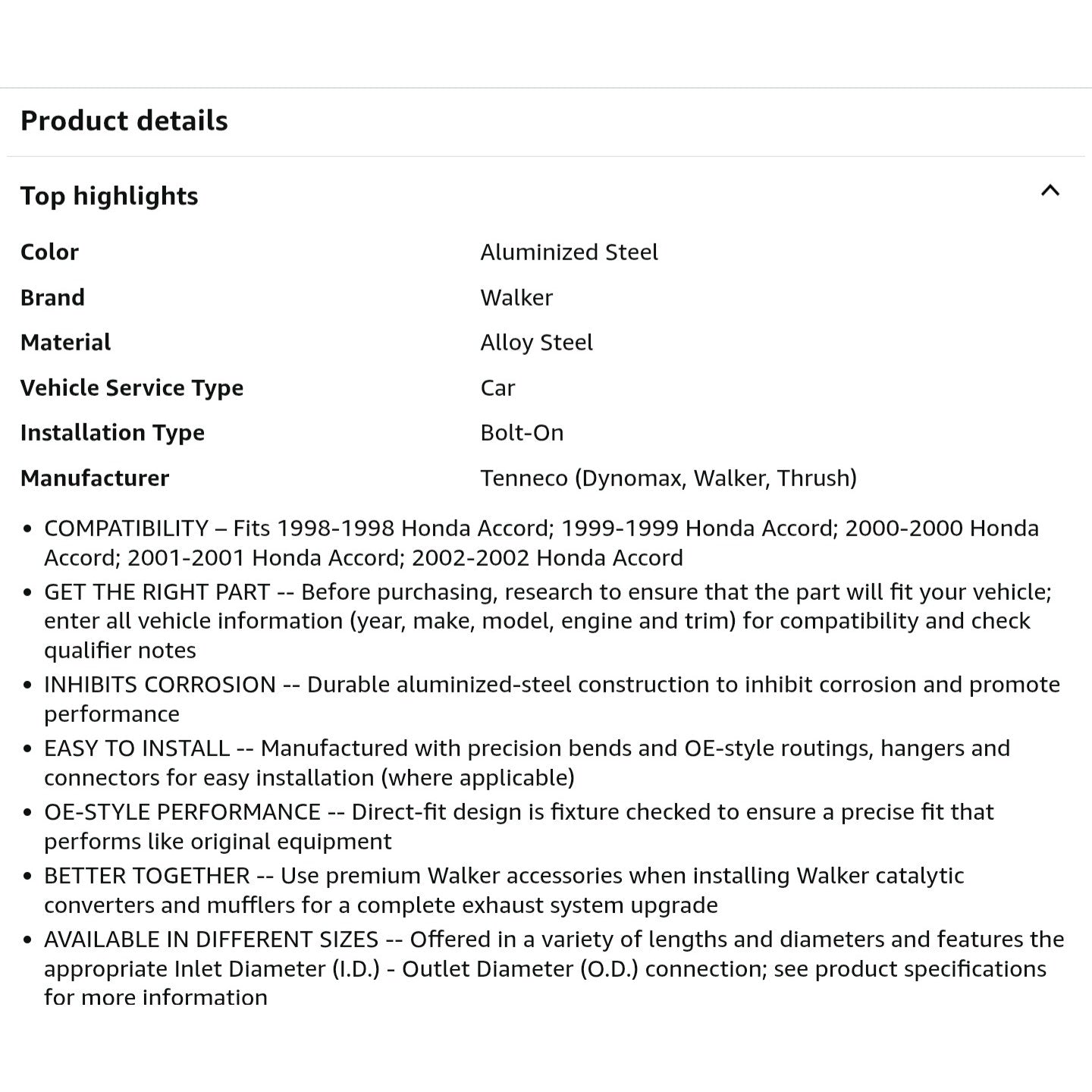 Walker 53547 Exhaust Pipe for Honda Accord