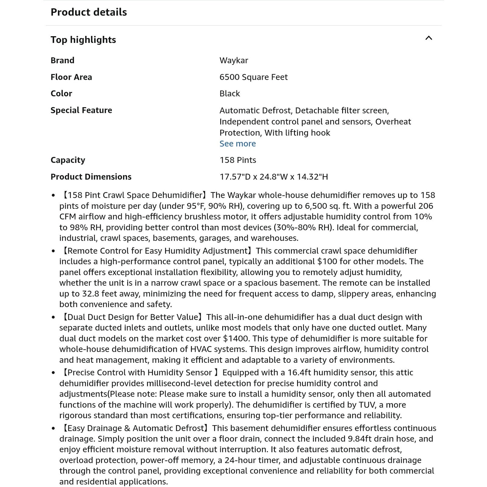$ 445 obo Waykar 158 Pints Crawl Space Dehumidifier with Remote Control up to 6,500 sq. ft., Dual Duct HVAC Commercial Whole-House Dehumidifier for Basement, Industry Water Damage Unit - 5-Year Quality Coverage