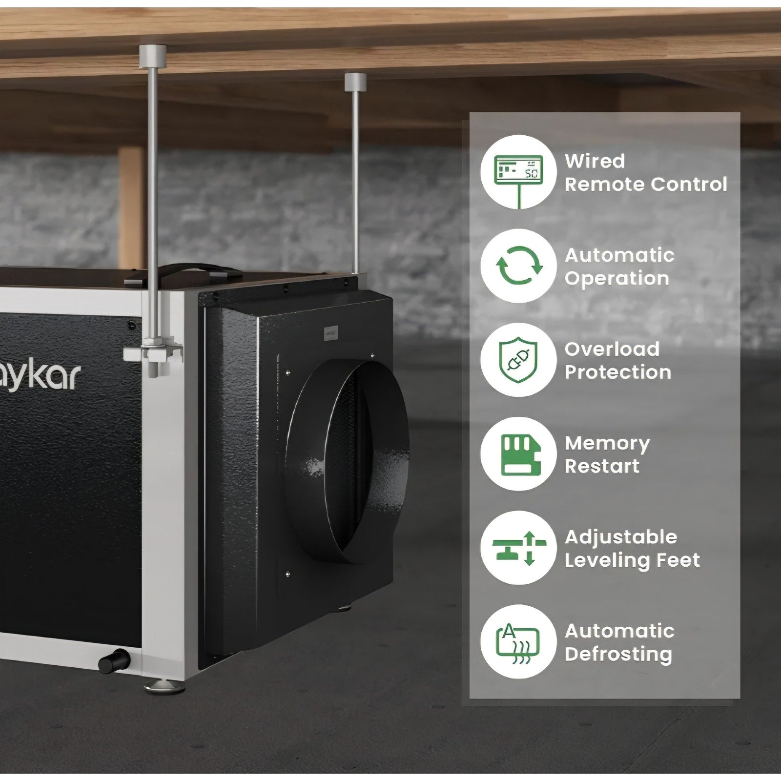 Waykar 158 Pints Crawl Space Dehumidifier with Remote Control up to 6,500 sq. ft., Dual Duct HVAC