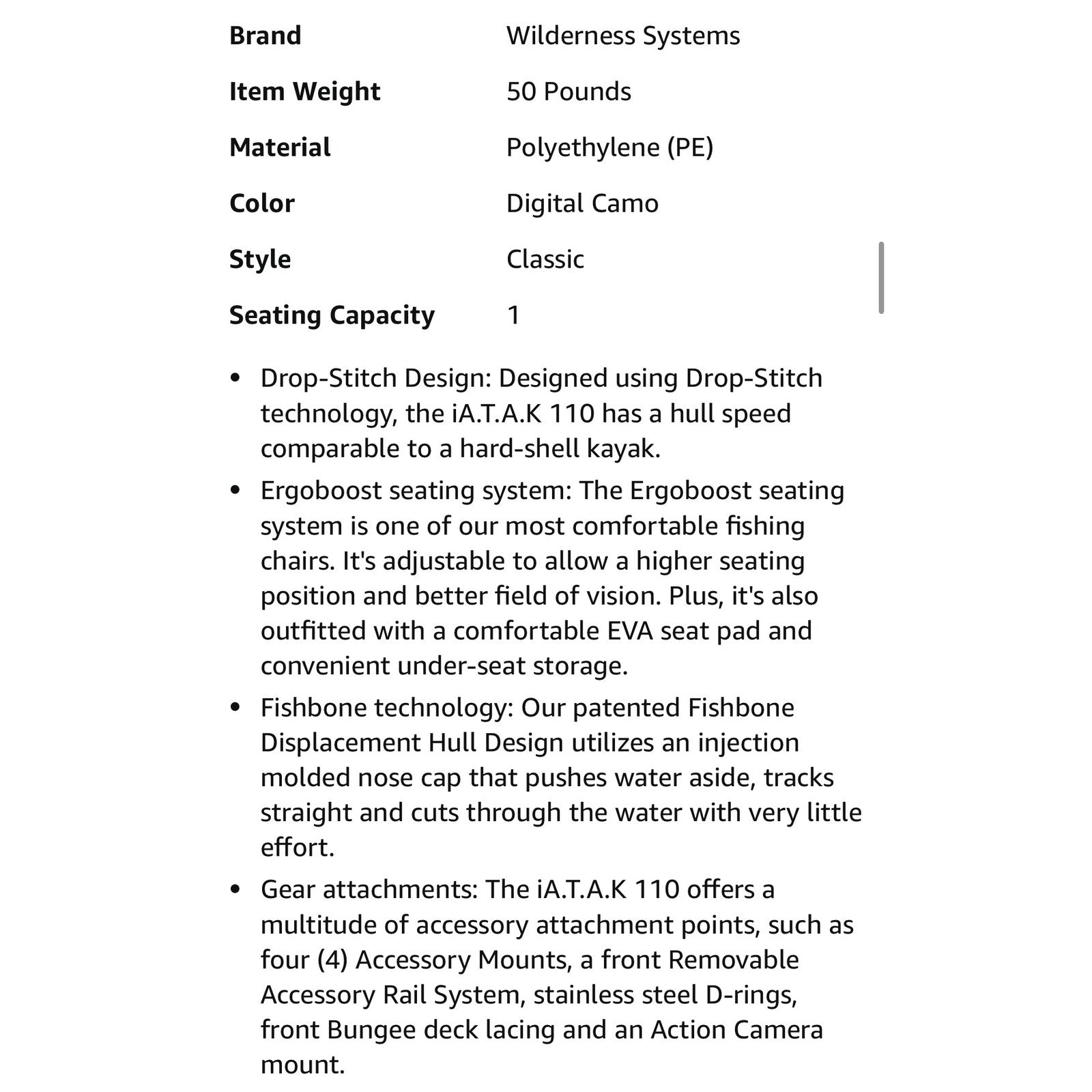 Wilderness Systems iATAK 110 - Sit on Top Fishing Kayak - Inflatable 11ft