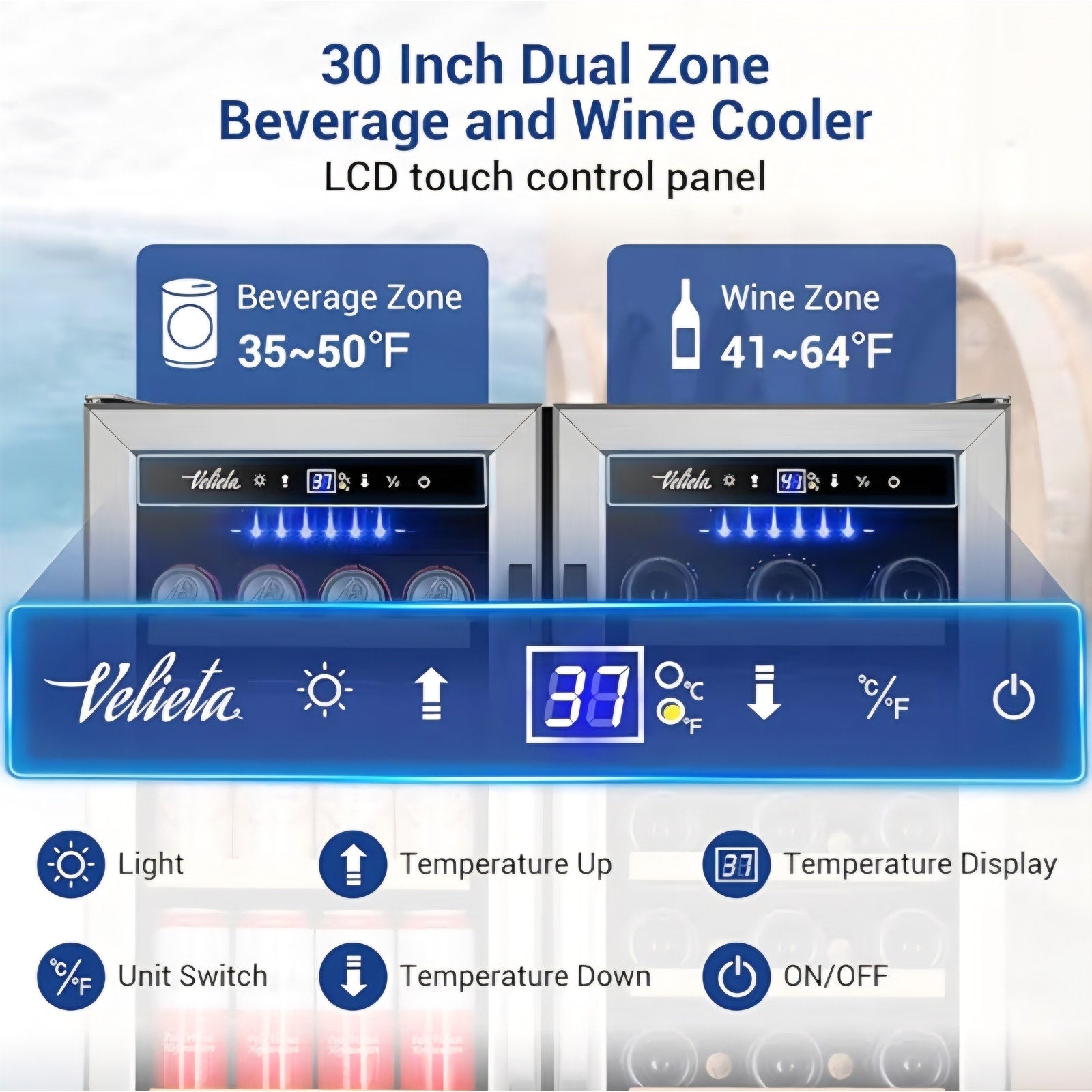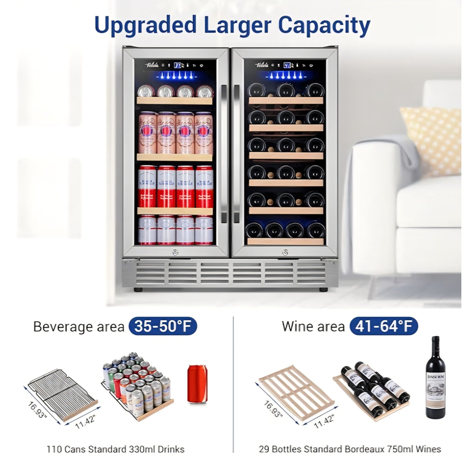 Wine and Beverage Refrigerator 30 Inch, Upgrade Dual Zone Wine Cooler, 30'' Wine beverage Fridge