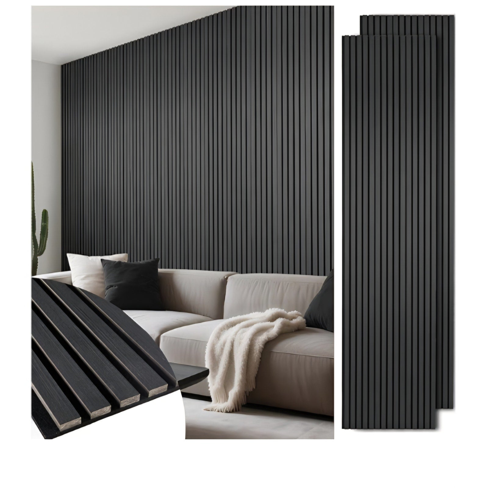$ 155 obo Wood Slat Wall Panels 2 Pack 106" x 23.6", Acoustic Wooden Panel for Wall, Soundproof 3D Fluted Panels for Interior Wall Decor, Living Room, Bedroom - Black (Cover Approx.35 sq.ft)