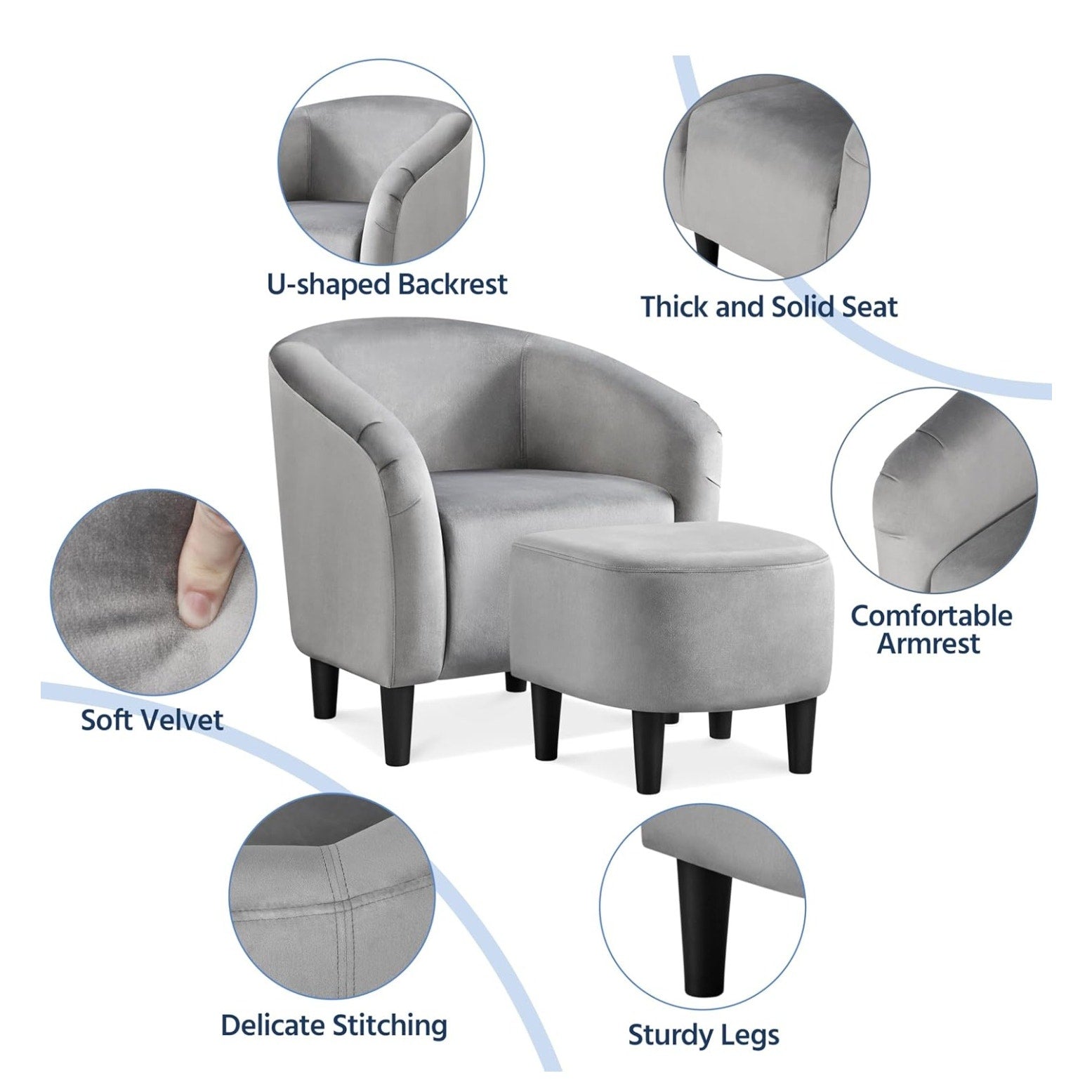 Yaheetech Accent Chair with Ottoman Set, Modern Upholstered Soft Barrel Chair with Footstool,