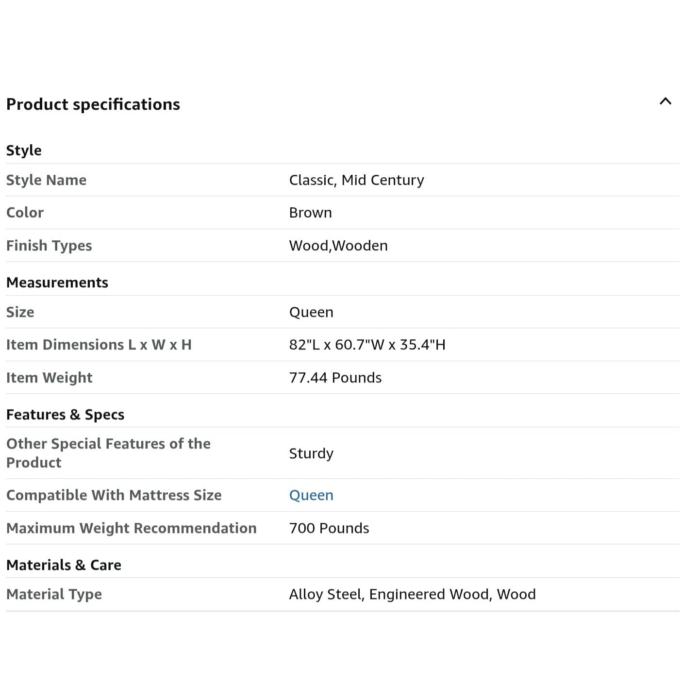 $ 250 obo ZINUS Allen Mid Century Wood Platform Bed Frame, Solid Wood Foundation, Wood Slat Support, No Box Spring Needed, Easy Assembly, Queen
