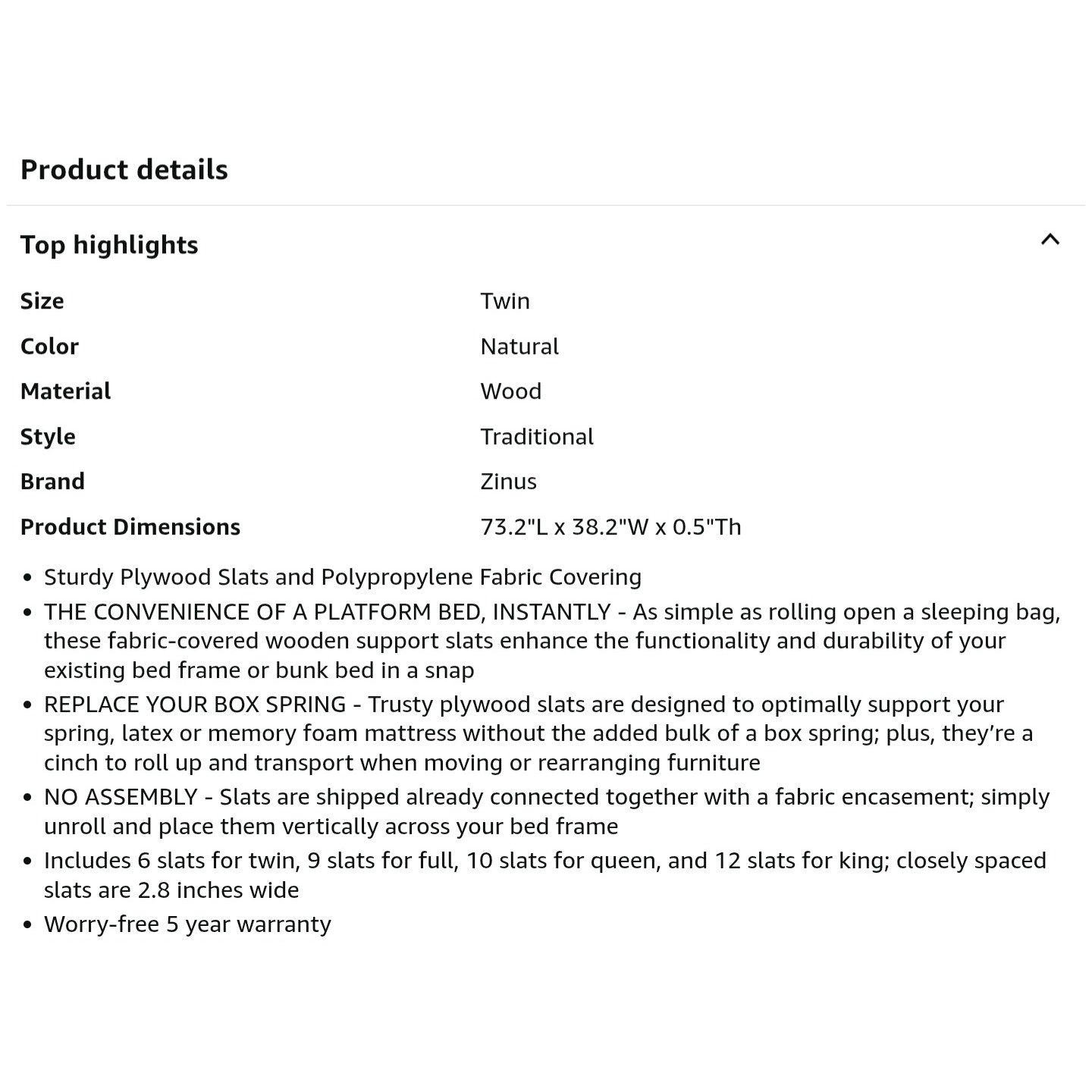 ZINUS Compack Fabric Covered Wood Slats, Bunkie Board, Box Spring Replacement, Twin