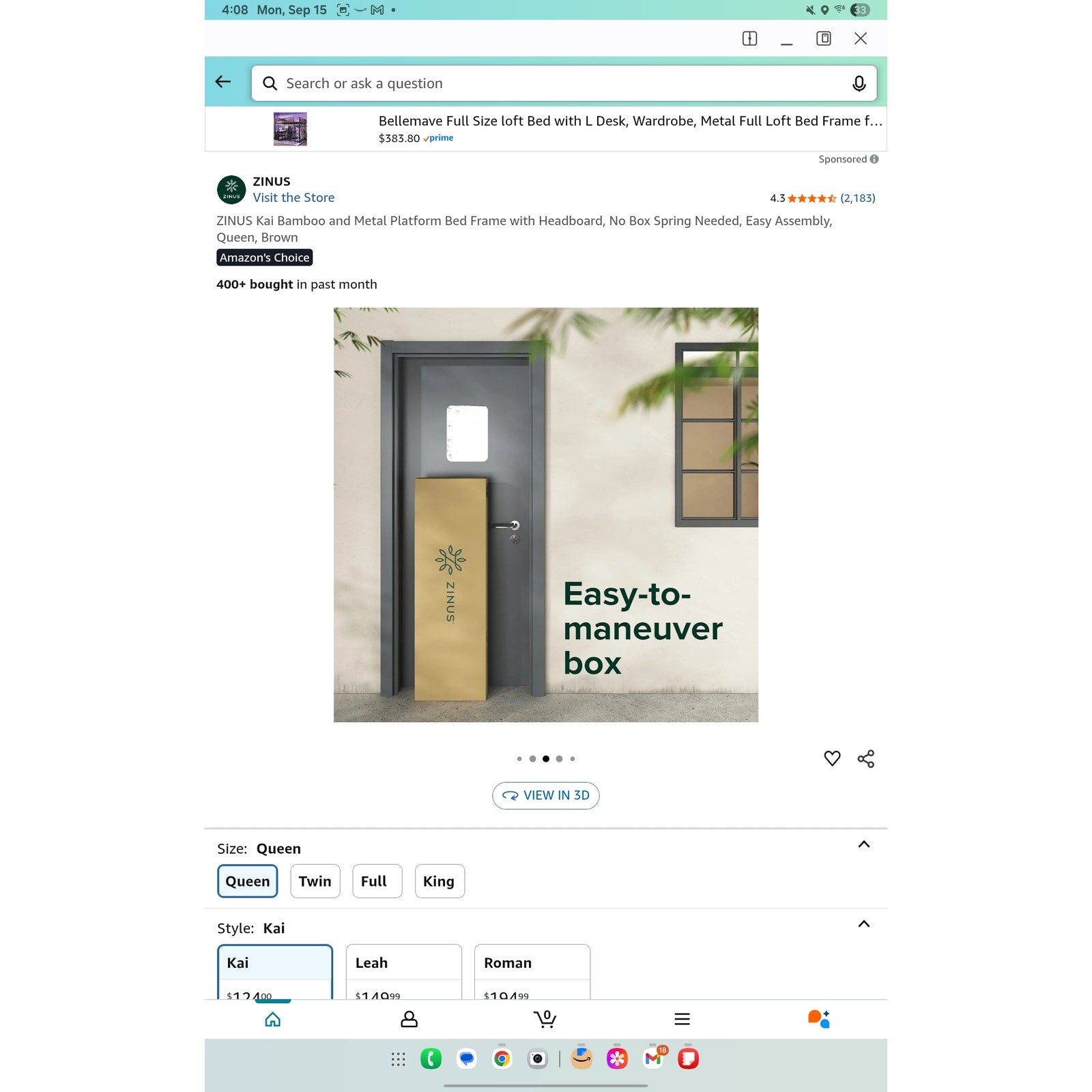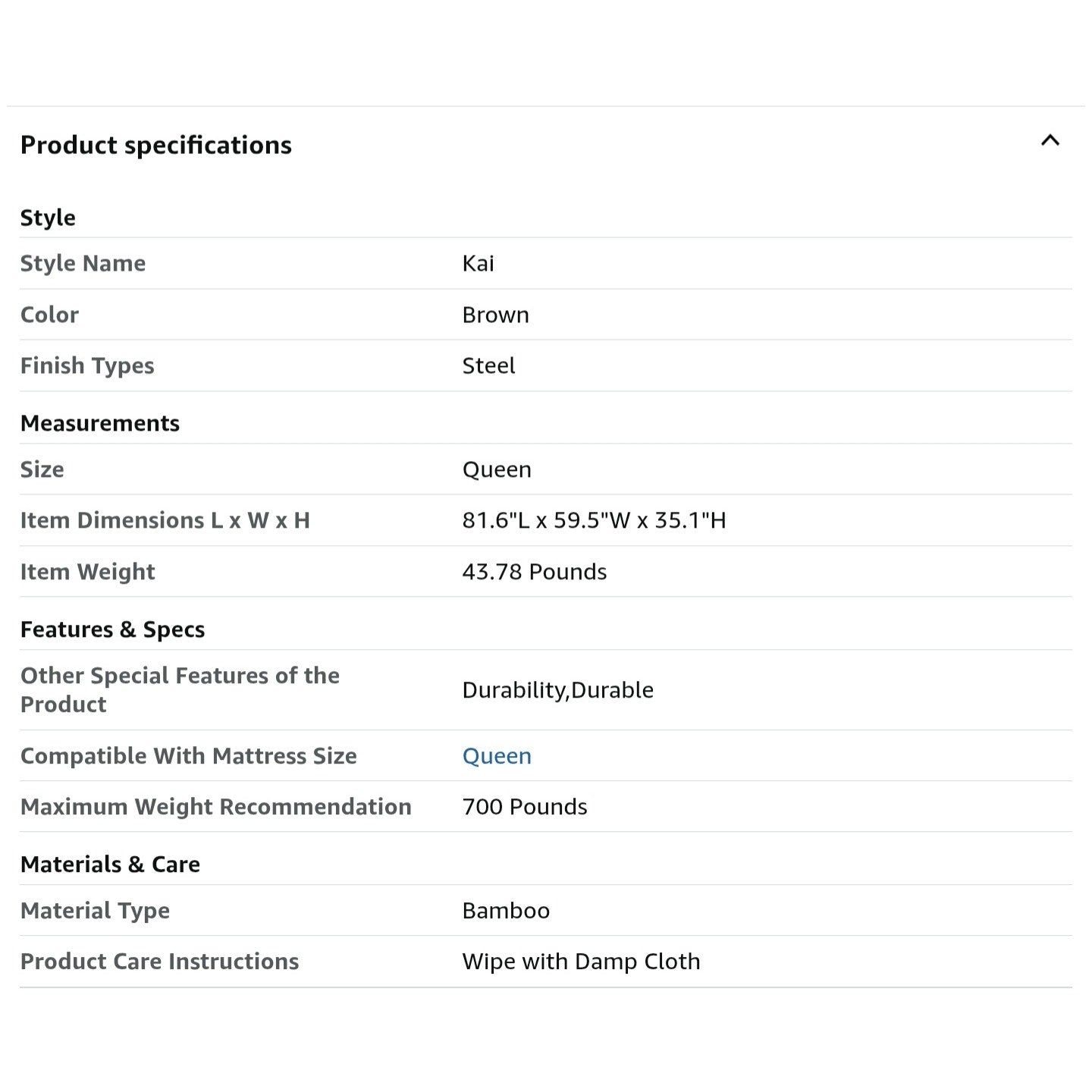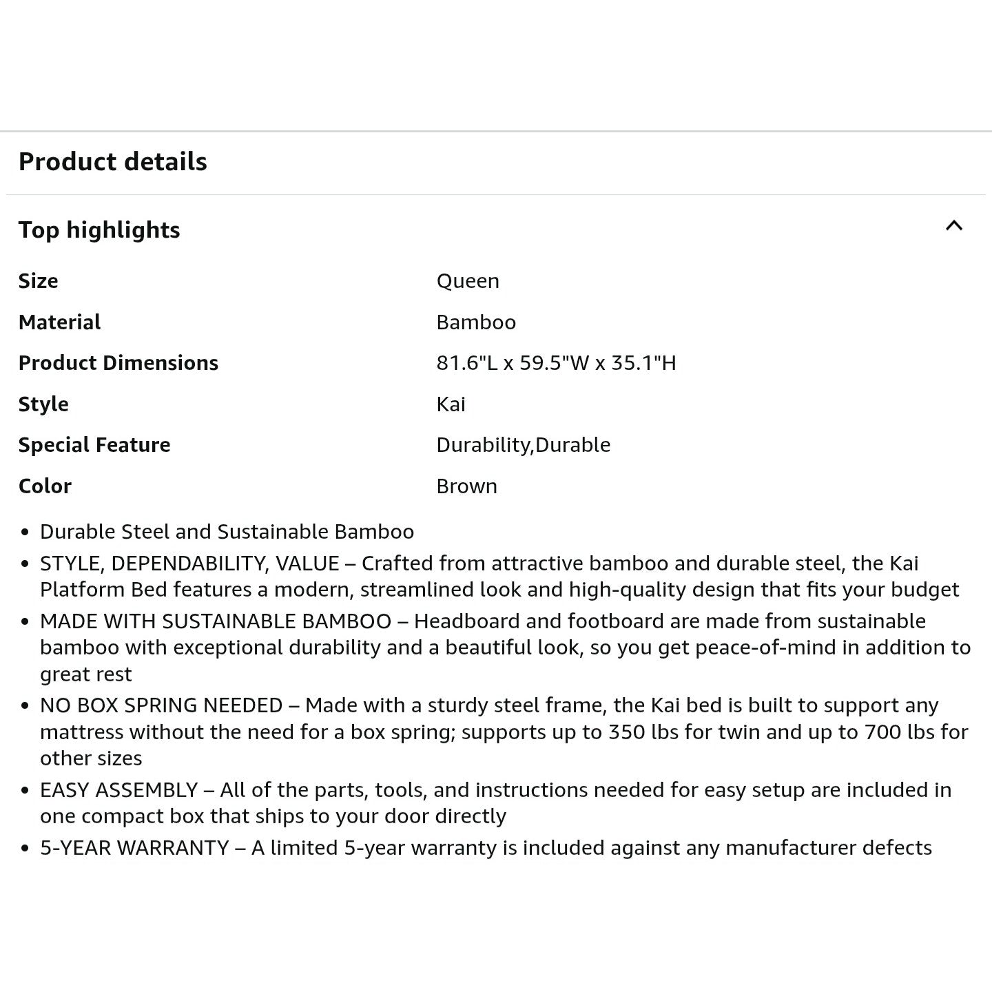 $ 90 obo ZINUS Kai Bamboo and Metal Platform Bed Frame with Headboard, No Box Spring Needed, Easy Assembly, Queen, Brown