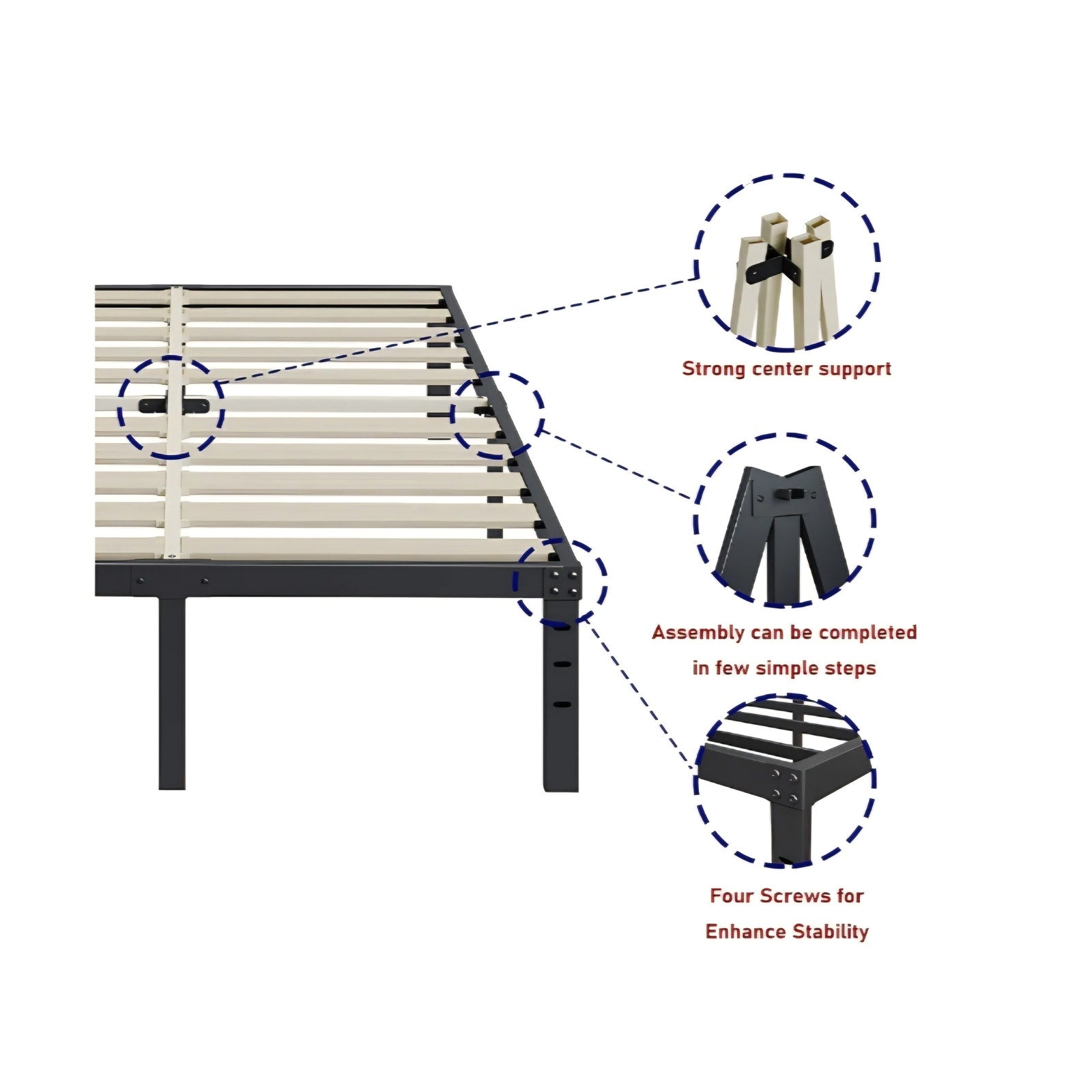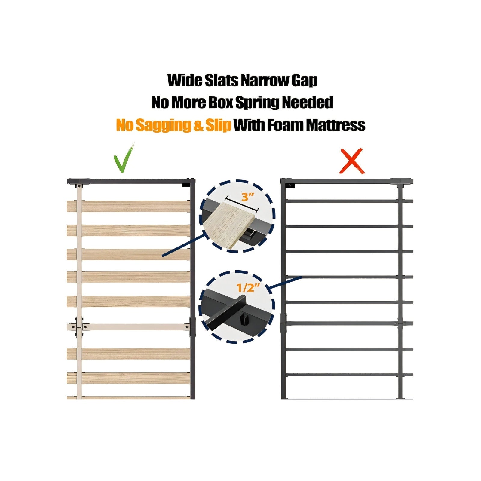 ZIYOO Queen Size Bed Frame 18 Inches Tall, 3 Inches Wide Wood Slats with 3500 Pounds Support